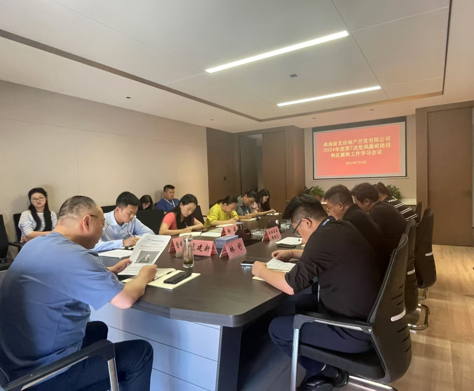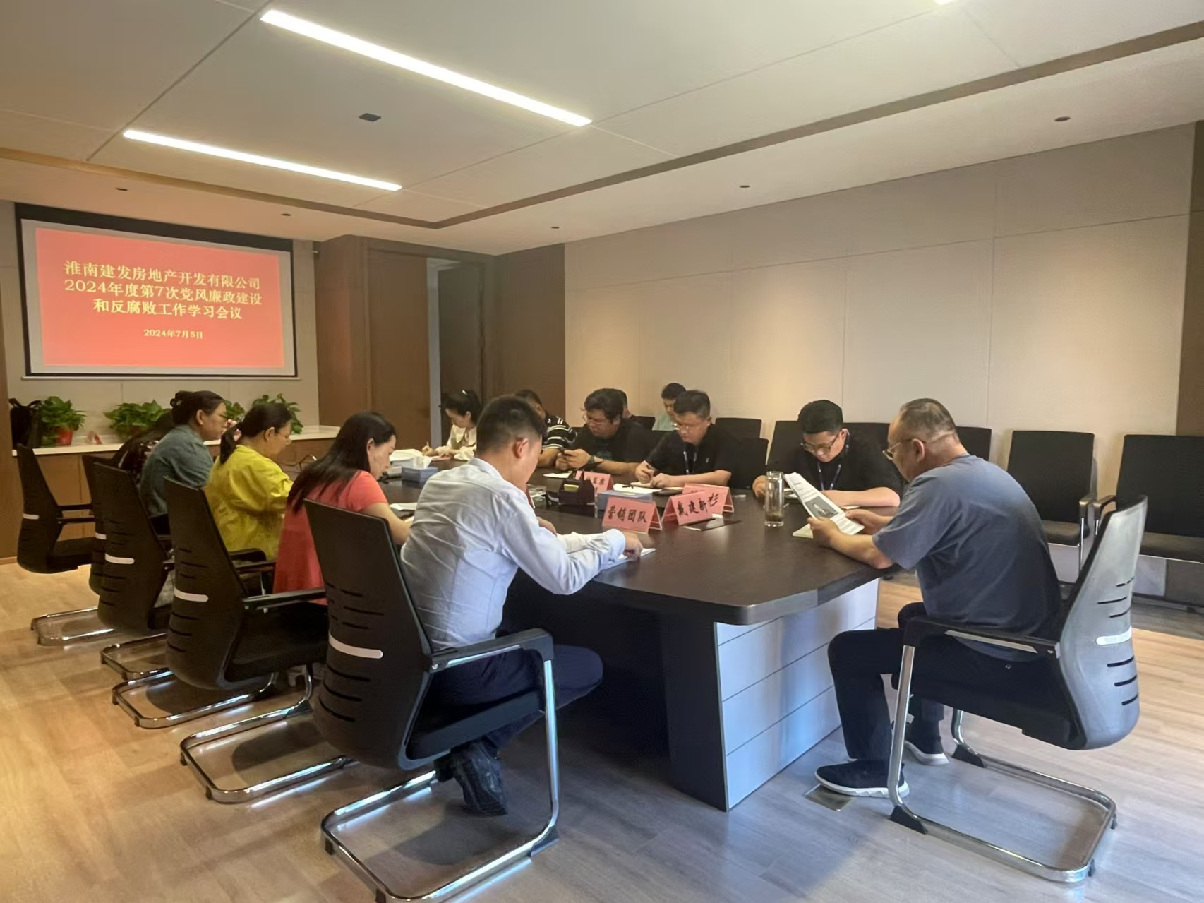 7月5日下午,淮南建發(fā)房地產(chǎn)開發(fā)有限公司在如意庭營銷中心2樓會議室召開2024年度第7次黨風(fēng)廉政建設(shè)和反腐敗工作學(xué)習(xí)會議,項(xiàng)目總經(jīng)理戴建新主持,公司全體員工參加會議。